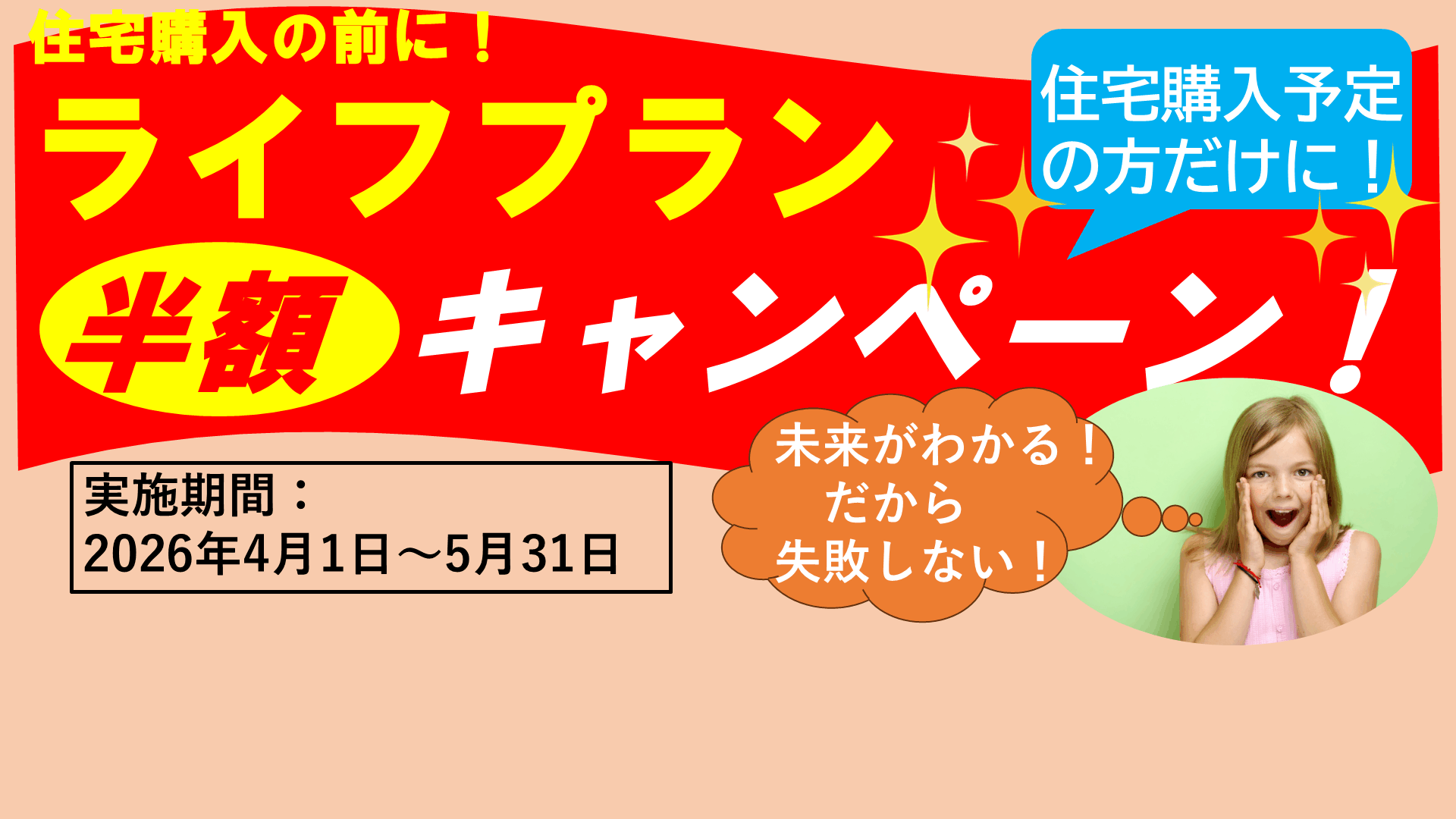 住宅取得とライフ(マネー)プランは切っても切れない関係!家計や大切にしたいライフイベントもご家庭ごとに大きく異なります。 弊社のライフプランニングは、ご家庭ごとに叶えたいこと・守りたいこと・ゆずれないこと・万が一に備えた保険見直しなどを加え、具体的・高精度のプランニングでご相談に対応しております。 だから住宅ローンの借りすぎ防止になる!教育費・老後資金にも不安なし! |