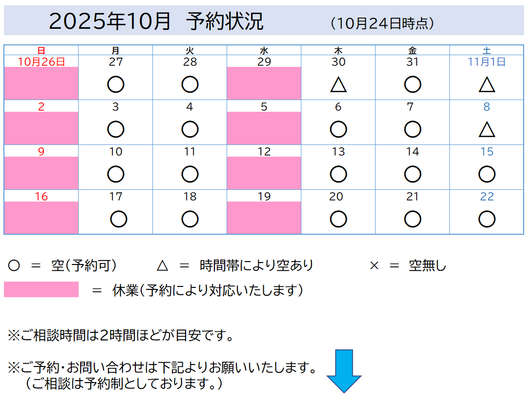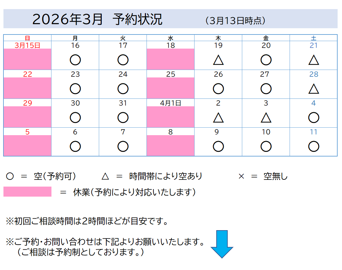 (ご予約により上記以外の日時でも対応しています)